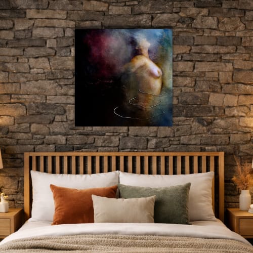 Pour l’acquéreur, cette œuvre apporte une atmosphère forte, sensuelle et contenue. Elle transforme un mur en point focal sans surcharge, grâce à son équilibre entre obscurité, lumière et matière. Elle convient particulièrement à un salon, une chambre, un bureau ou un espace plus intime, sur un mur clair pour accentuer la profondeur, ou sur un mur sombre pour intensifier l’effet de clair-obscur.